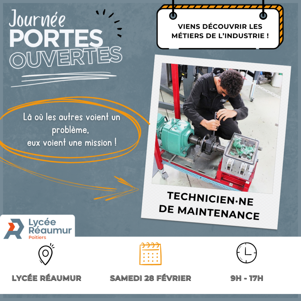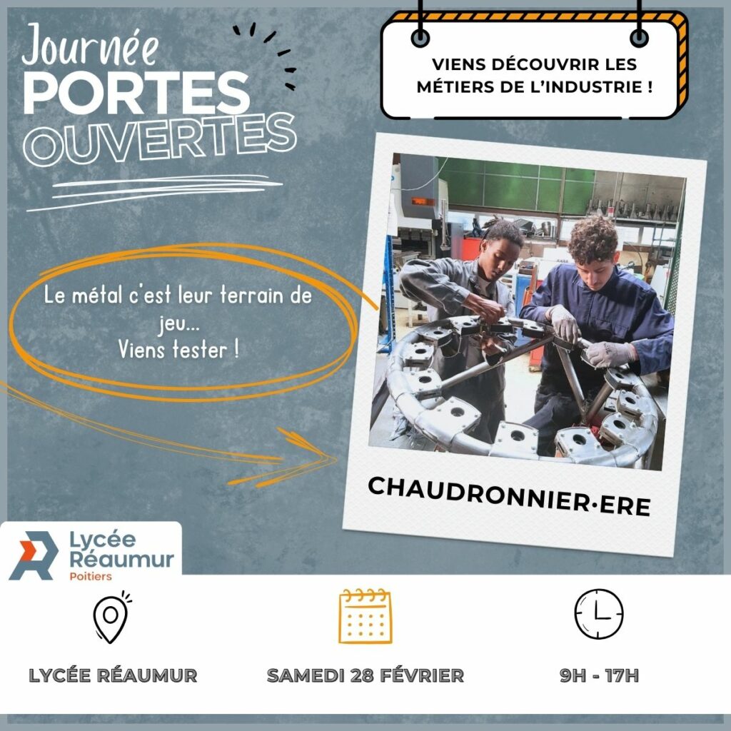 Journée portes ouvertes Publié par jkurdian Catégories Non classé Date 6 février 2026 Osez l’Industrie et venez découvrir les différents métiers et formations auxquels nous préparons. Share: jkurdian Previous post Ouverture du BTS CPI 6 février 2026 Next post Projet "La Caserne" 6 mars 2026 You may also like Projet « La Caserne » 6 mars 2026 Ouverture du BTS CPI 6 février 2026 EGEE au lycée Réaumur 6 février 2026