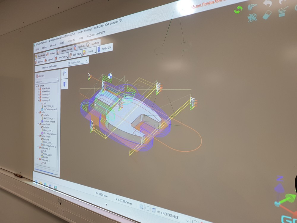 Cet outillage est le prolongement d’une clef dynamométrique. Il a été conçu et fabriqué par les stagiaires de la formation continue préparant le Titre Pro ORUAO (Opérateur régleur en usinage assisté par ordinateur).